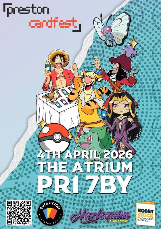 Trading card show featuring Pokemon, Magic the Gathering, Lorcana and One Piece vendors. Kids Zone, music, food and great cards! Card Fest is coming to Preston on the 4th April […]
